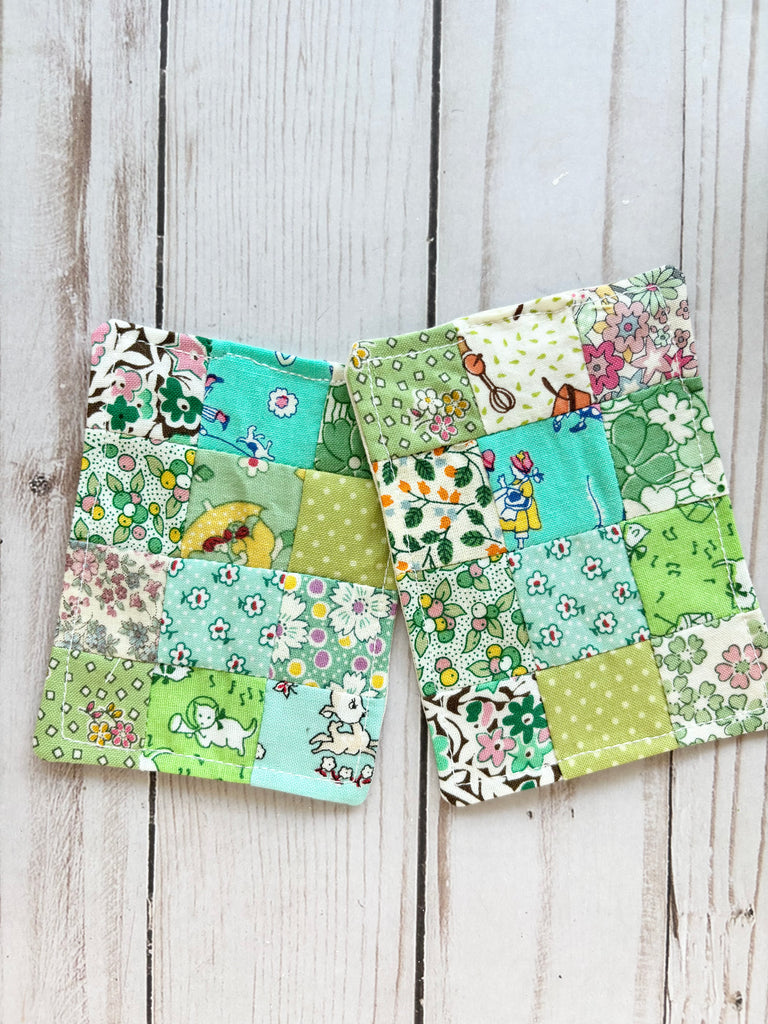 The miniature quilt measures approx. 3” x 4” and each little fabric square measures 1 inch by 1 inch. Please note, each quilt is different, each has different prints from different 1930s fabric, the backside is cream muslin. If you wanted a specific pattern, I might have it, just let me know.