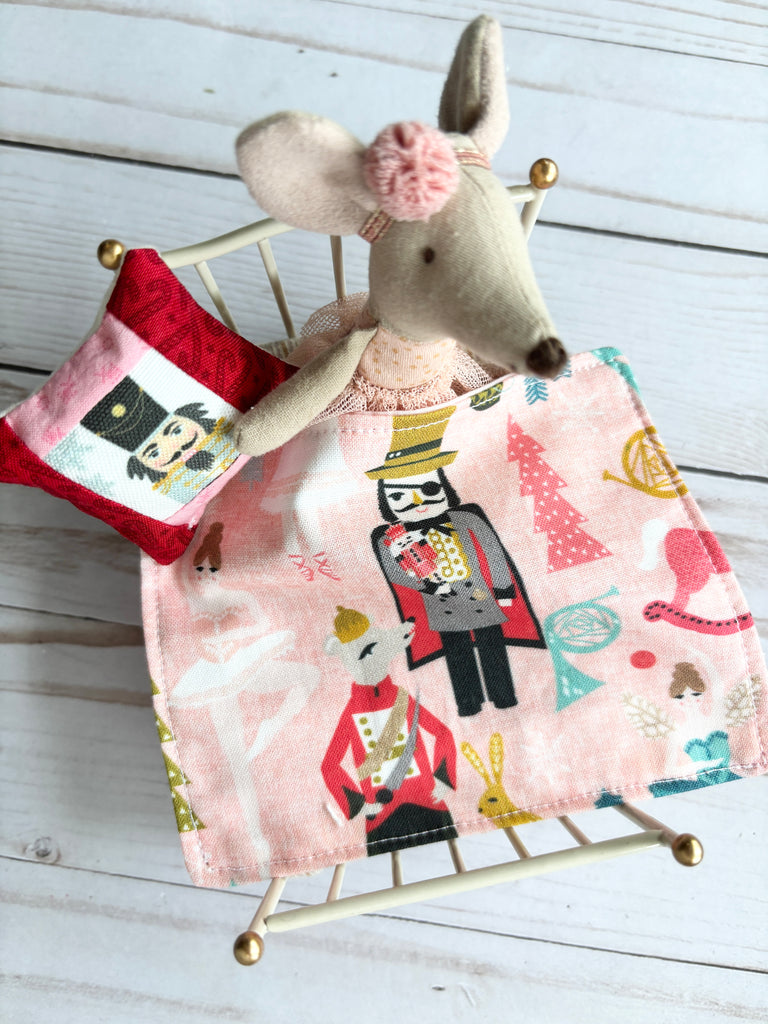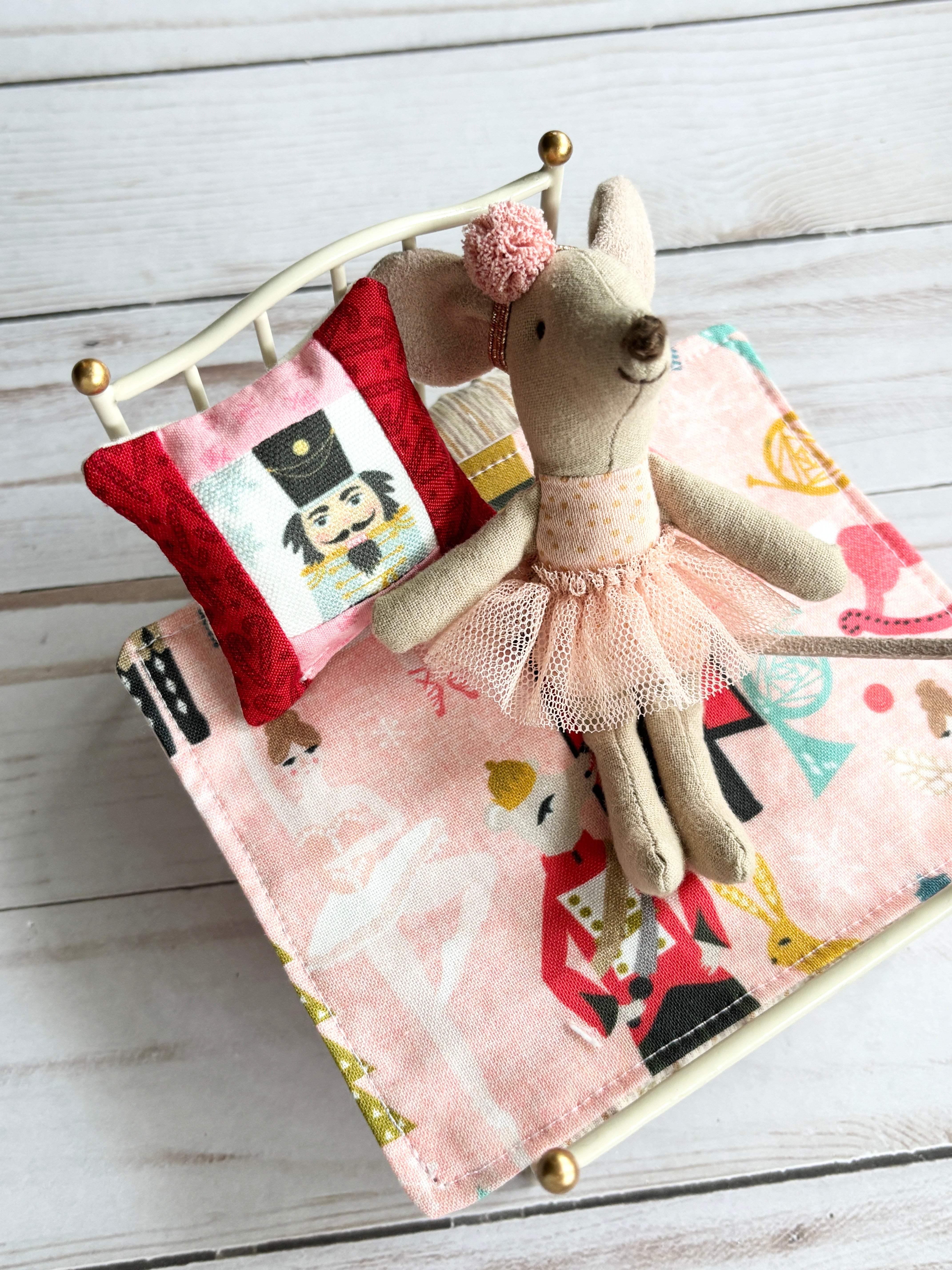 Small Dollhouse Nutcracker Quilt - Miniature Bedding Set - Maileg Mouse