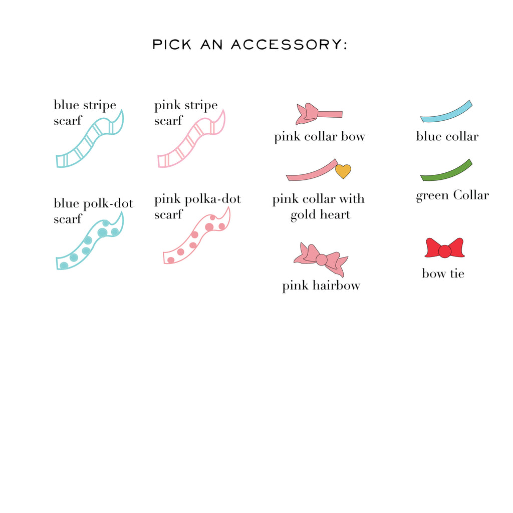 **Upon ordering, please let me know the exact name, address, dog breed or illustration and dog accessory (if any) that you would like.