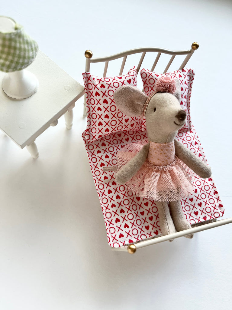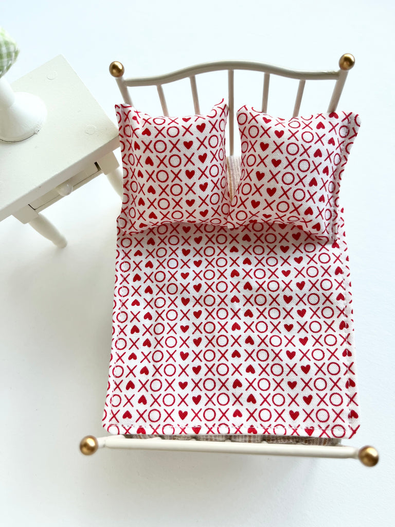1930s Dollhouse Small Valentine Quilt and Pillows, 1:12 scale, maileg mice furniture, modern dollhouse, dollhouse bedding