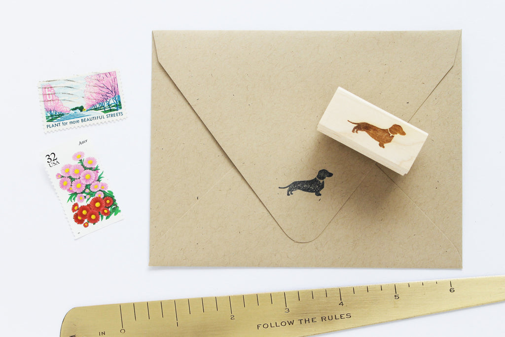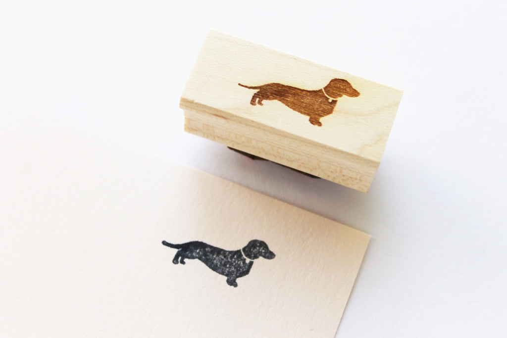 Introducing the little dachshund stamp! This is stamp is perfect for a dachshund lover! This stamp is wood mounted rubber stamp of a dachshund silhouette with collar. The stamped image size is 1/2"x 1 1/2".